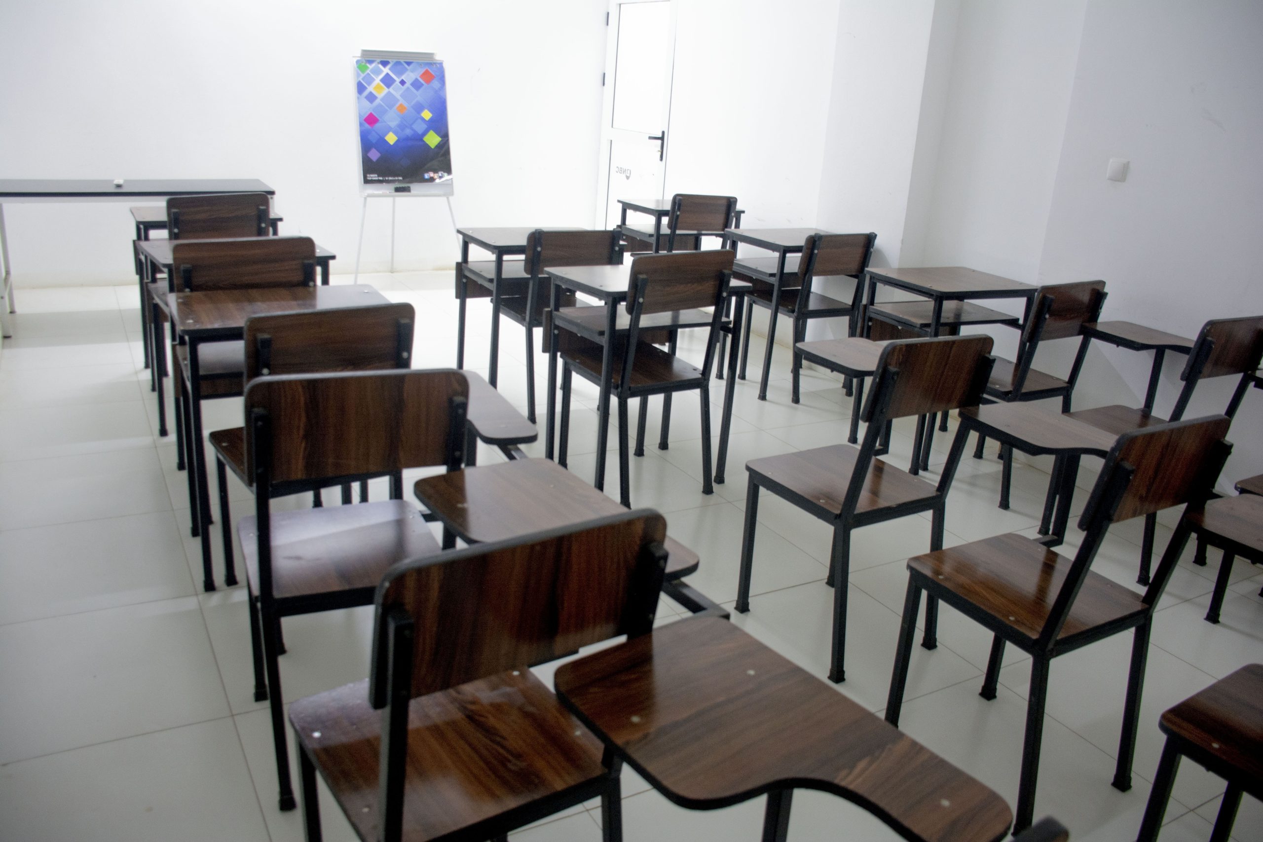 Móveis que permitem configurações para acomodar palestras, workshops, e trabalhos individuais.